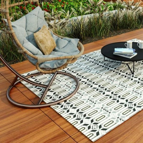 4' x 6' Moroccan Outdoor Mat, Cool Silver