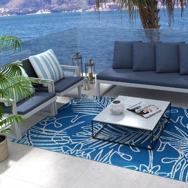 4' x 6' Palm Leaf Outdoor Mat, Turquoise White