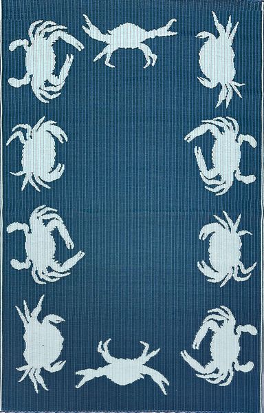 5' x 8' Crabs Outdoor Mat, Blue/Teal