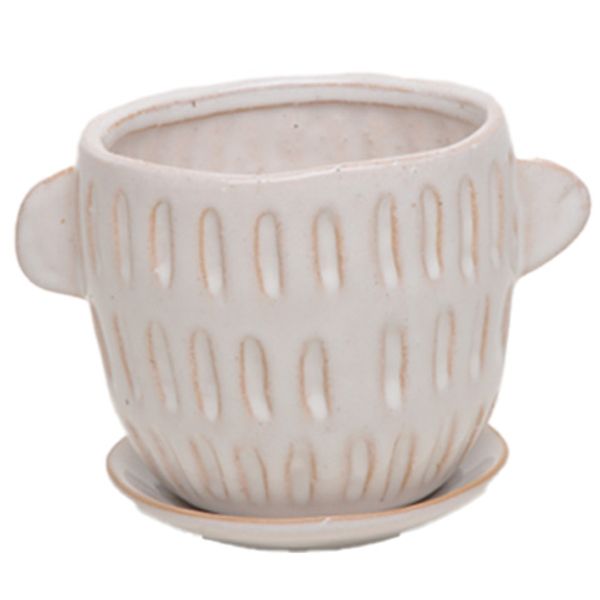 Aberdeen Handle Pot with Attached Saucer, 7.75'' x 6.25'', Creamy White, Case of 4