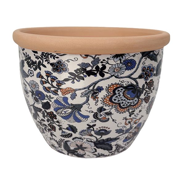 Abigail Floral Planter with Terracotta Rim, 8" x 6", Multi-Blue, White Floral & Terracotta, Case of 4