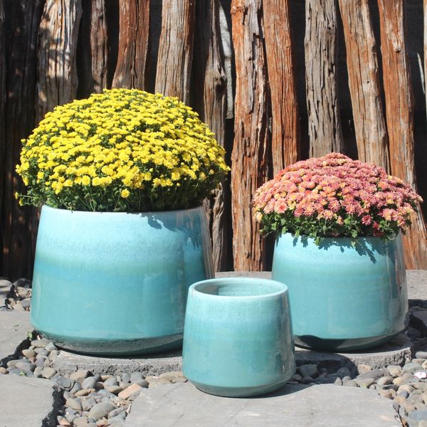 Adagio Flared Assortment: Adagio Flared Planter, Set of 3: 9.75"; 13.5"; 19", Assorted Colors: Aqua Blue, Jade, White, Nautical Blue & Seafoam Green