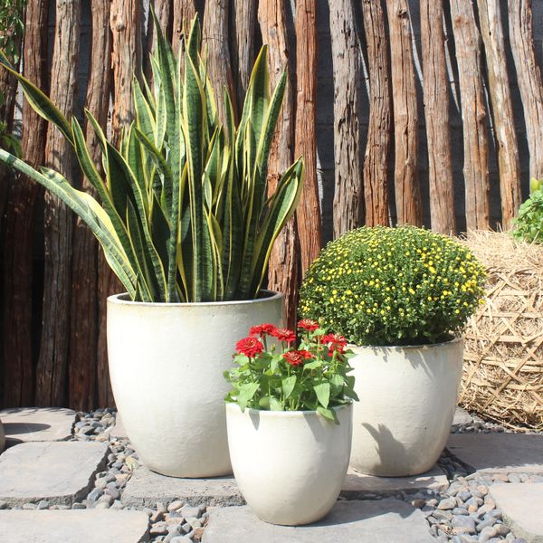 Alladin Assortment: Alladin Egg Planter, Set of 3: 12.25"; 15.75"; 20", Assorted Colors: Crystal Grey, Jade, Aqua Blue & Creamy White