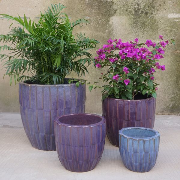 Amethyst Assortment: Eloise Rimmed Planter, Eloise Egg Planter & Eloise Egg Pot, Set of 4: 9"; 11.75"; 15"; 18", Color: Falling Purple