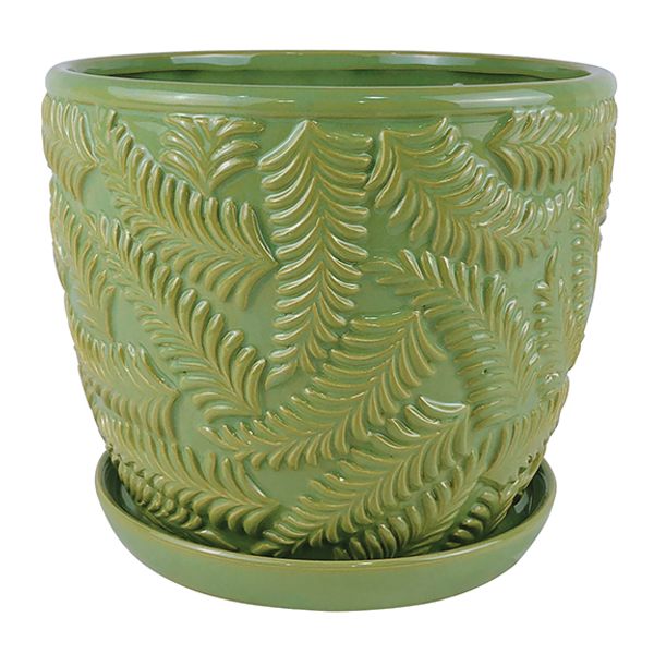 Beach Fern Planter with Attached Saucer, 7" x 6.75", Meadow Green, Case of 4