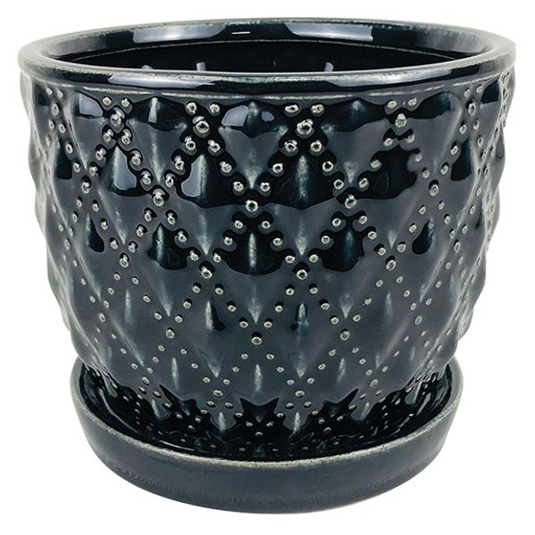 Beaded Diagonal Planter with Attached Saucer, 7.5" x 6.75", Black, Case of 4