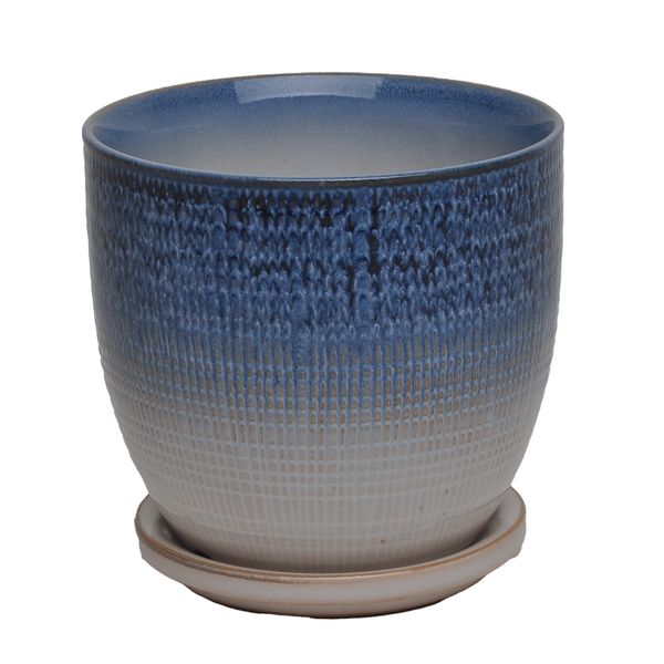 Beatrice Etched Planter with Attached Saucer, 5.5" x 5", Azure Blue, Case of 6