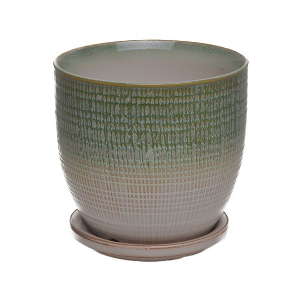Beatrice Etched Planter with Attached Saucer, 5.5" x 5", Spring Green, Case of 6