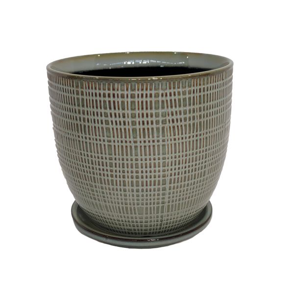 Beatrice Etched Planter with Attached Saucer, 7" x 6.5", Artic Mist, Case of 4
