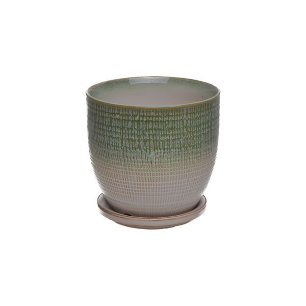 Beatrice Etched Planter with Attached Saucer, 7" x 6.5", Spring Green, Case of 4