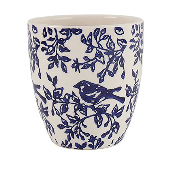 Bird on Branch Planter with Attached Saucer, 10.5" x 9.5", Blue & White, Case of 2