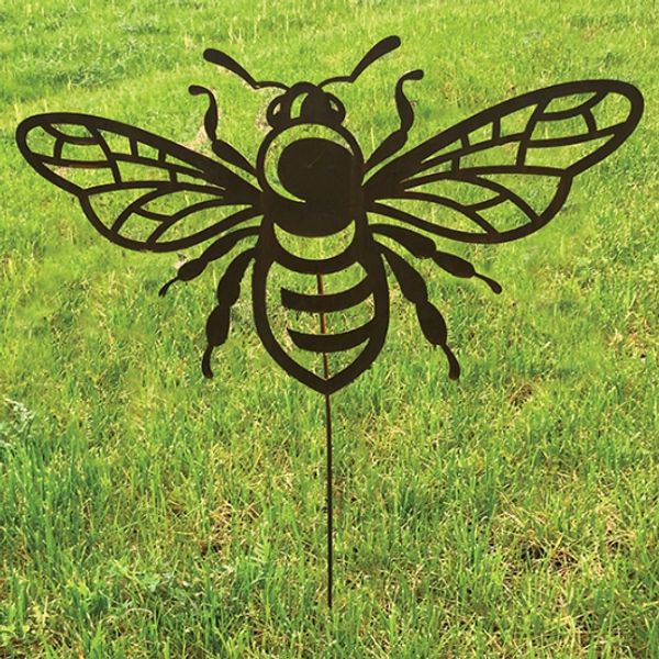 Silhouette, Bumble Bee 32"w x 20"h w/ 22" Ground Rod, Weathering Steel