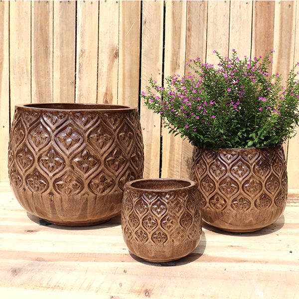 - Cascade Leaf Planter Leather Brown: 3 sets