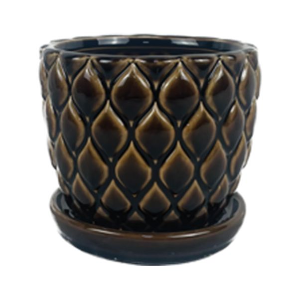 Cassia Pot with Attached Saucer, 5" x 4.5", Chestnut, Case of 6