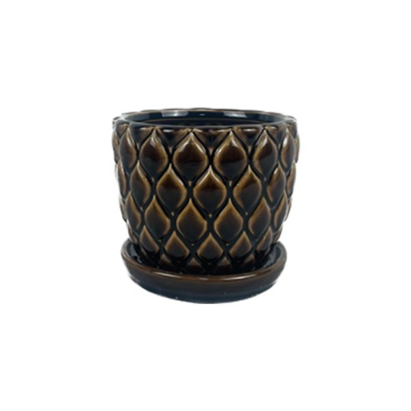 Cassia Pot with Attached Saucer, 7" x 6.25", Chestnut, Case of 4