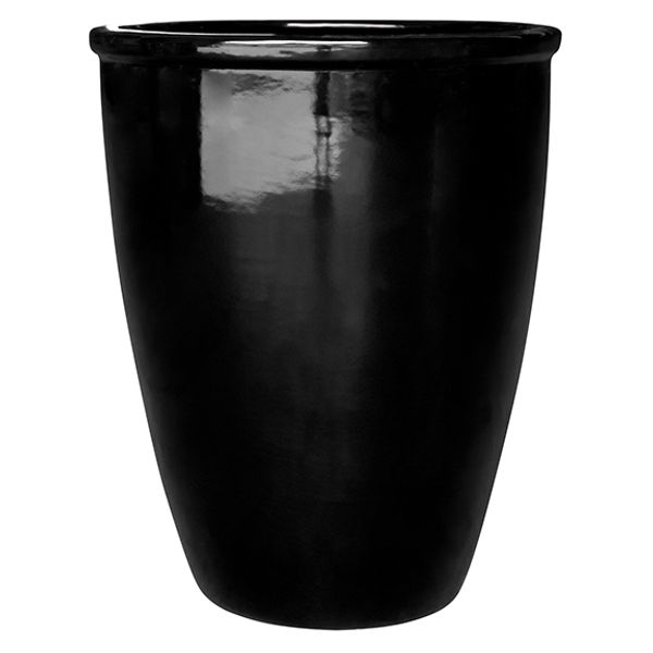 Charbray Round Rim Assortment: Round Rim Planter, Sets of 3: 17.75"; 22.75"; 28", Glossy Black