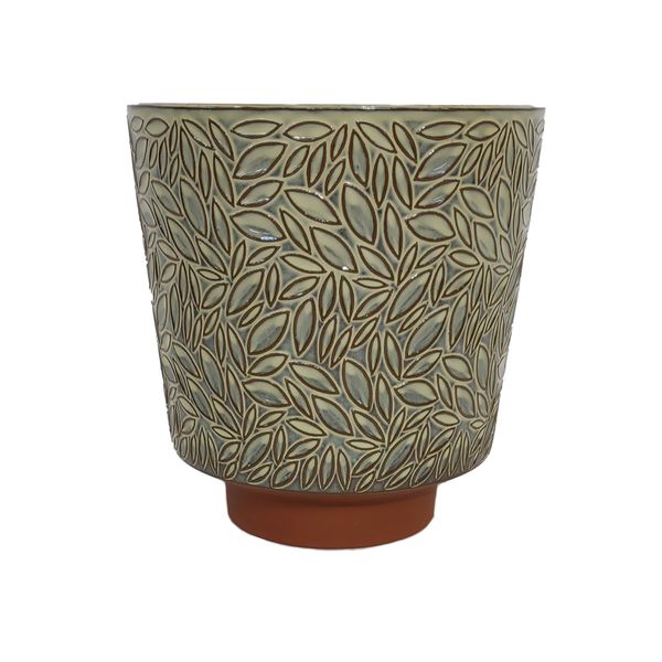Clarissa Leaf Pot with Terracotta Base, 7.75" x 8.25", Buttercream