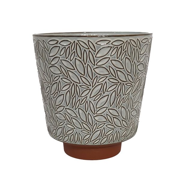 Clarissa Leaf Pot with Terracotta Base, 7.75" x 8.25", Glazed Chiffon, Case of 4