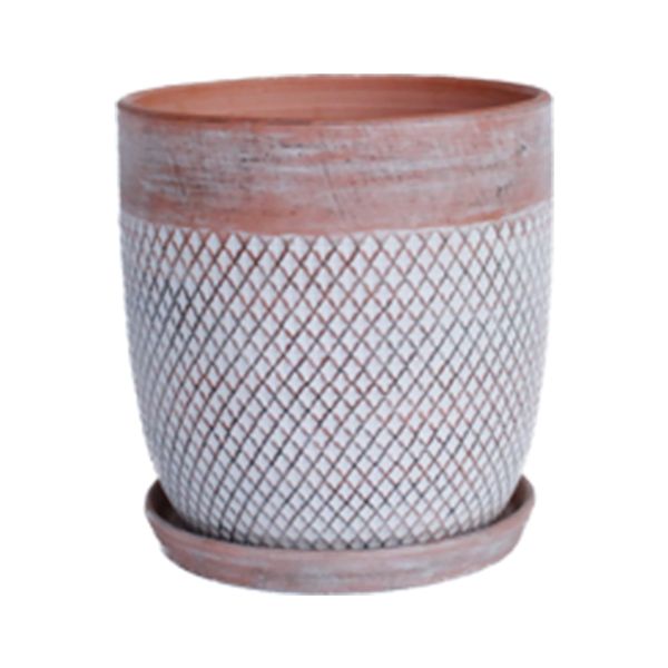 Diamond Diva Terracotta with attached saucer, 14'' x 14'', White Wash Terracotta, Case of 1