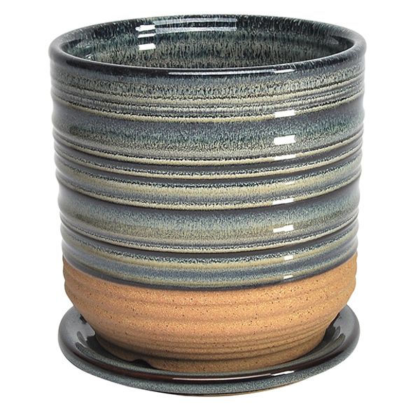 Ellora Planter with Attached Saucer, 6.75" x 6.5", Slate, Case of 4