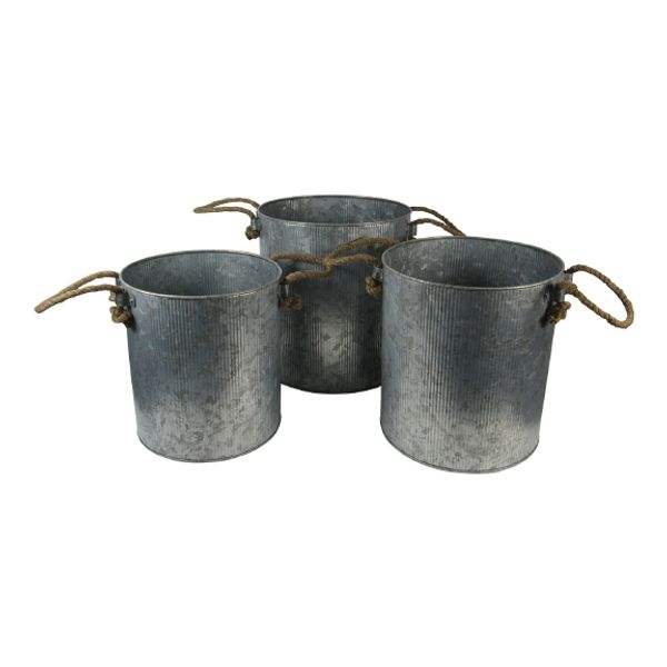 Galvanized Paint Pail w/ Rope Handles, Set of 3: 9” x 10”; 10"x 11"; 11” x 12”, Zinc