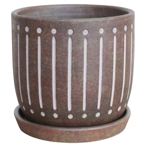 Gobi Etched Egg Pot with Attached Saucer, 5.5'' x 5.5'', Carob