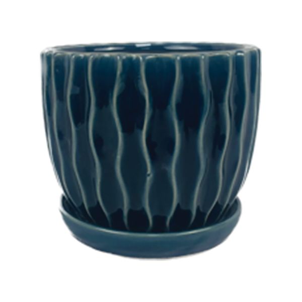 Groovy Pot with Attached Saucer, 5" x 4.5", Agean Blue, Case of 6