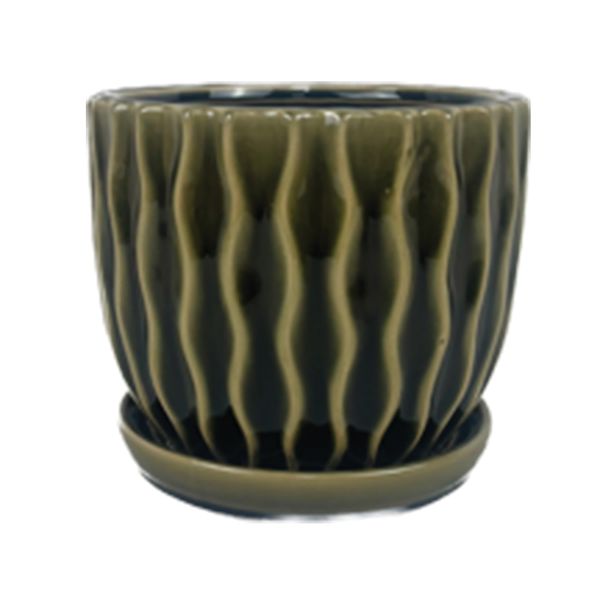 Groovy Pot with Attached Saucer, 5" x 4.5", Mushroom, Case of 6