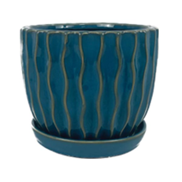 Groovy Pot with Attached Saucer, 5" x 4.5", Turquoise, Case of 6