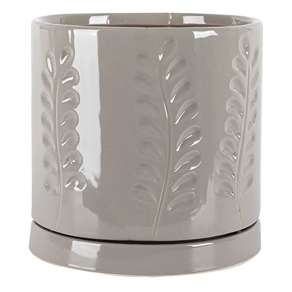 Janna Cylinder Pot with Attached Saucer, 6" x 6.25", Light Grey, Case of 6