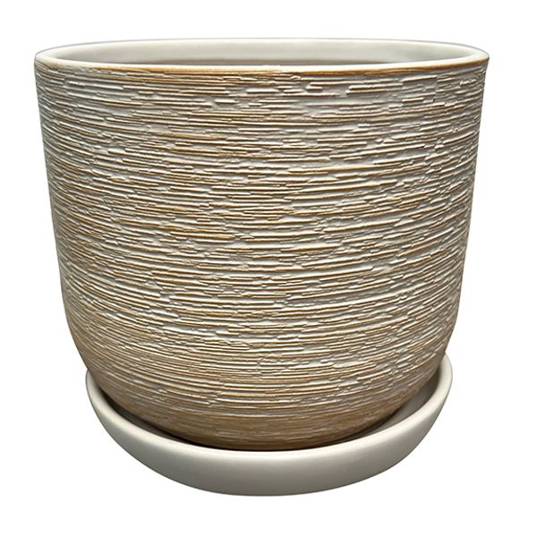 Naomi Planter with Attached Saucer, 6" x 5.75", Sesame White, Case of 6