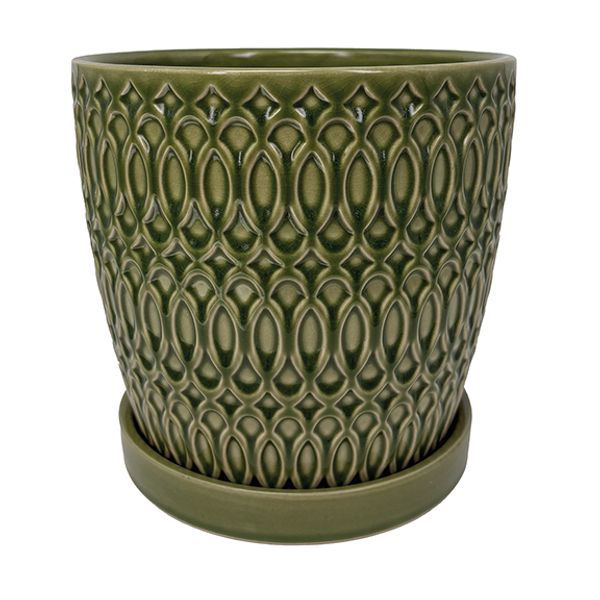 Nouvelle Scrolled Planter with Attached Saucer, 7.5" x 7", Grass Green, Case of 4