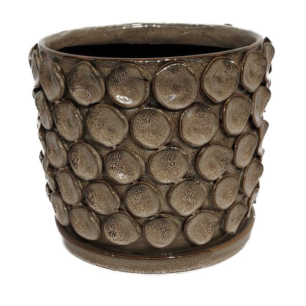 Ocho Pot with Attached Saucer, 6.25" x 5", Mocha Latte, Case of 6