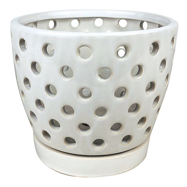 Pierced Orchid Pot, 5.5" x 4.75", White