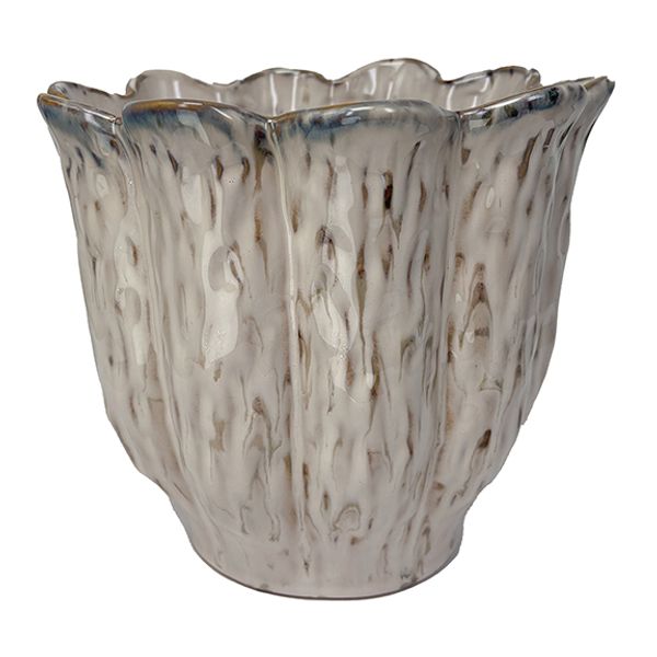 Pirouette Scallop Rim Planter, 6.5" x 6", Flecked Cotton, Case of 6