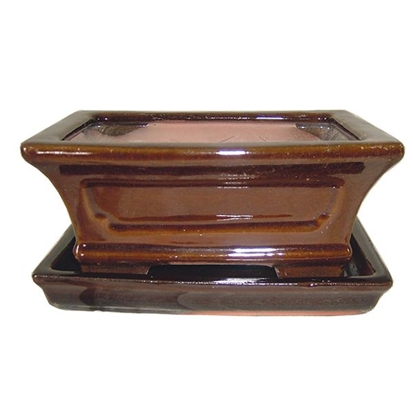 Professional Bonsai Pot with Saucer, 10.75" x 8.5" x 4", Assorted Colors: Dark Brown, Mustard, Dark Moss Green, Copper, Green & Blue, Case of 8