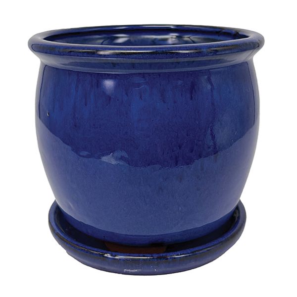 Rimmed Bell Pot with Attached Saucer, 5.5" x 5.25", Blue, Case of 6