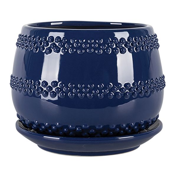 Seneca Planter with Attached Saucer, 5" x 4.25", Blue, Case of 8