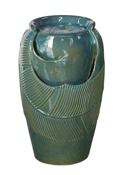 Tall Cracked Egg Fountain, 13" x 21", Blue Green