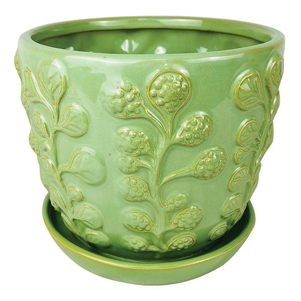 Trailing Vines Planter with Attached Saucer, 7.75" x 6.75", Meadow Green, Case of 4