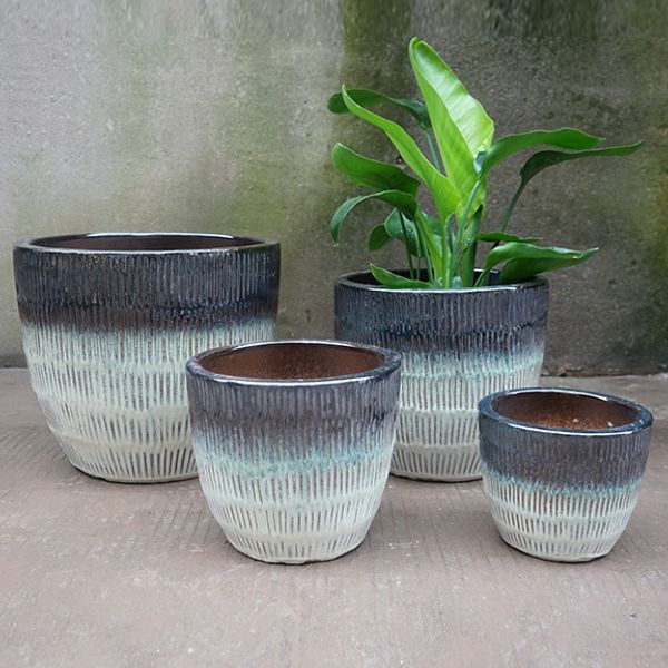 - Chiseled Umbre Planter Blue on Beige: 3 sets