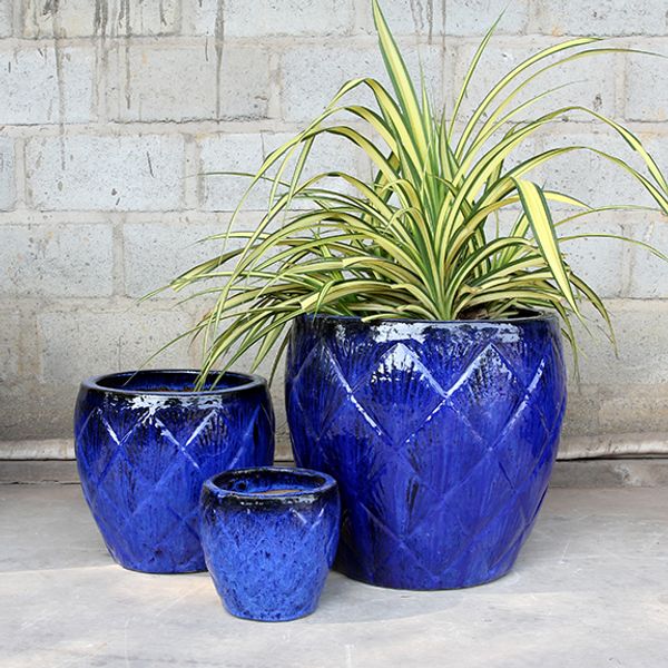 - Sunrise Quilt Planter Marble Blue: 2 sets