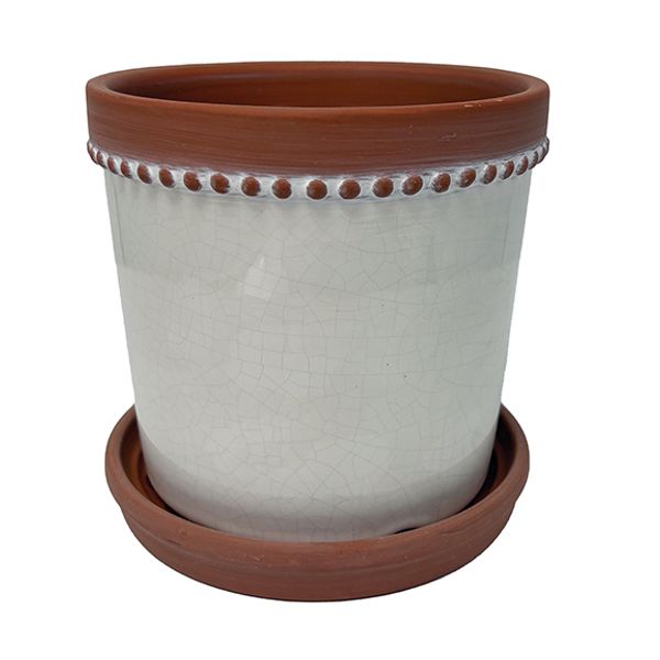 White Washed Terracotta Pot with Attached Saucer, 6.5" x 6.5", Cotton, Case of 8