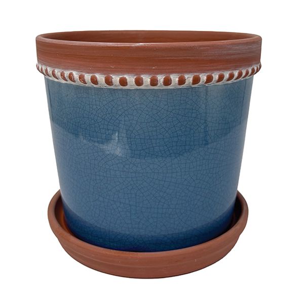 White Washed Terracotta Pot with Attached Saucer, 6.5" x 6.5", Dusty Sapphire, Case of 8