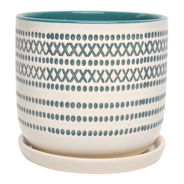 XOXO Egg Pot with Attached Saucer, 6.75" x 6", Teal, Case of 4